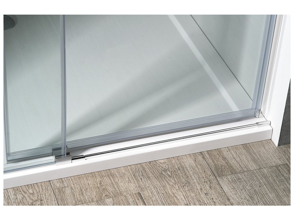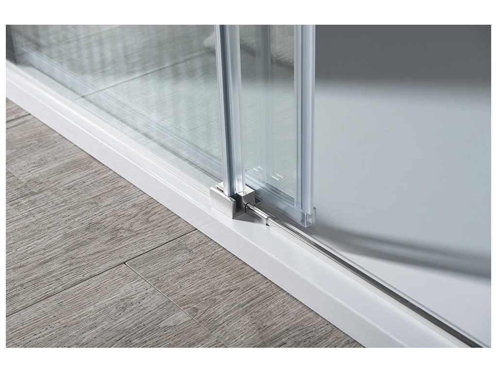 - Sklo dveří je volně zavěšené bez spodního vodícího profilu