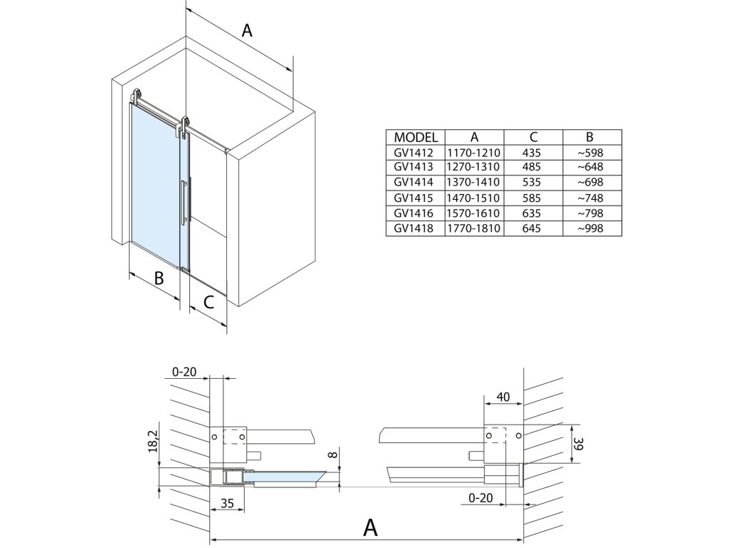 - Při výrobě dveří je použito bezpečnostní sklo o síle 8 mm s oboustrannou povrchovou úpravou COATED GLASS pro snadnou údržbu