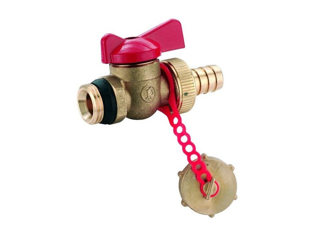 GIACOMINI R608D kohout 1/2" vypouštěcí kulový, s integrovaným těsněním, s hadicovou vývodkou a zátkou, krátká páčka, R608DY053