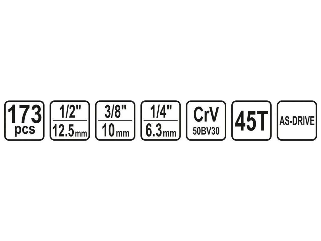 Gola sada Sthor 1/2", 3/8", 1/4" 173ks TO-58688, 63603005