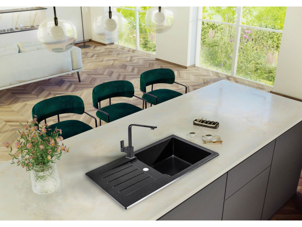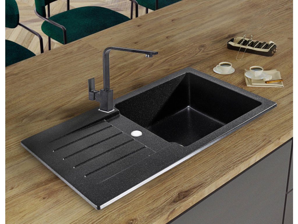 - žulový kuchyňský dřez v černé barvě s odkapem
