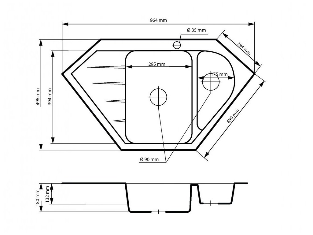 Kuchyňský dřez Taragona 965.10R je řešen netradičně vnější hrany jsou ostré, rohy vaniček naopak zaoblené. Jako většina rohových dřezů má Taragona 965.10R k dispozici malou vaničku na pravé straně a odklácí plochu vlevo. Hlavní vanička dřezu je dostatečně prostorná a hluboká, pohodlně tedy umyjete i objemné hrnce nebo pečící plechy. Menší vanička může například sloužit pro oplachování zeleniny a ovoce, rozmrazování masa apod.