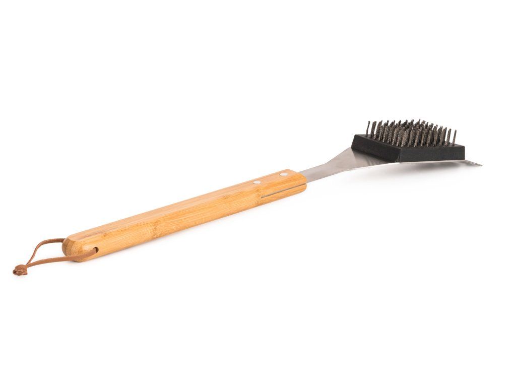 Po každém grilování přichází na řadu úklid – a s tím vám pomůže čistící kartáč G21. Hrubé štětiny si poradí s odolnou mastnotou a díky praktické škrabce odstraníte i silnější nánosy nečistot. Ergonomicky tvarovaná bambusová rukojeť dobře padne do ruky a zároveň dodává nářadí přírodní vzhled. Díky délce 45,3 cm se navíc dostanete i do hůře přístupných míst.