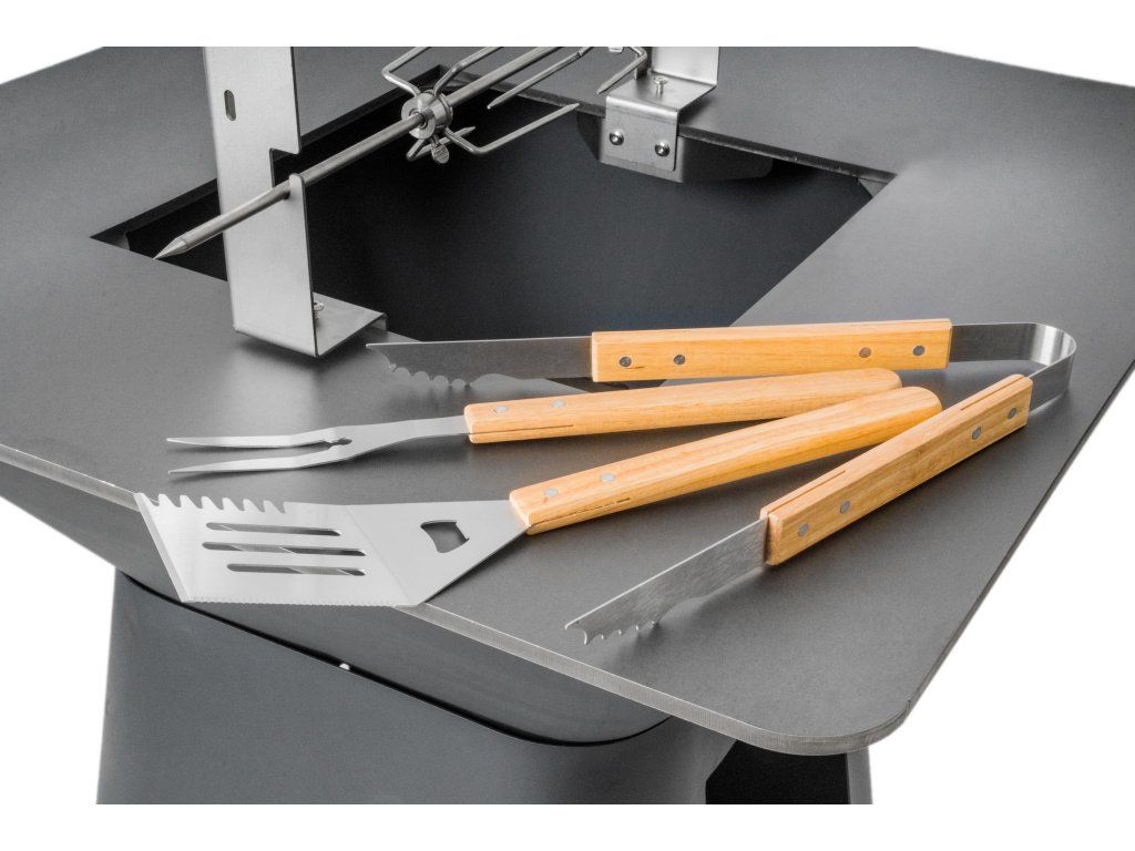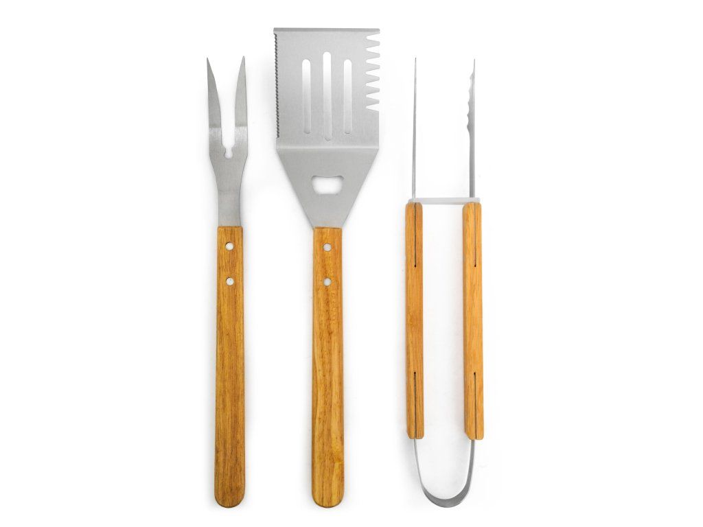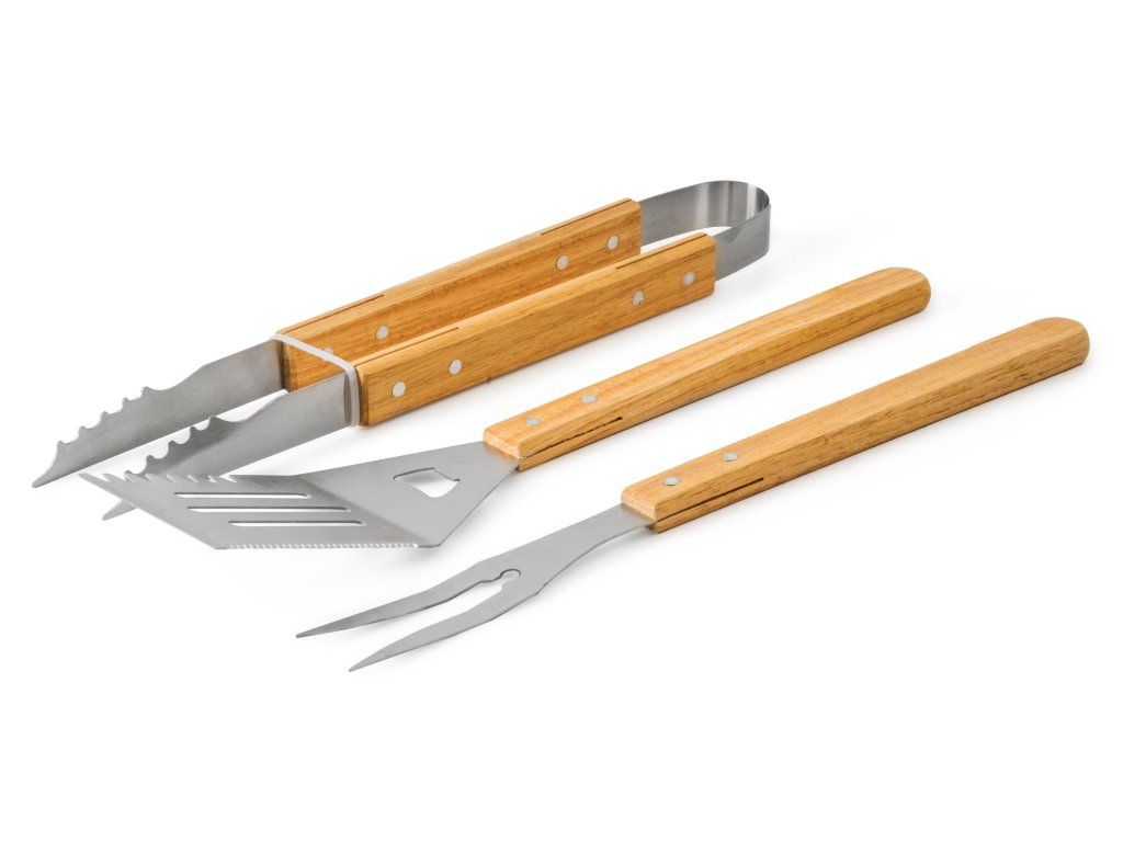 - kompletní sada s obracečkou, grilovací vidlicí a grilovacími kleštěmi