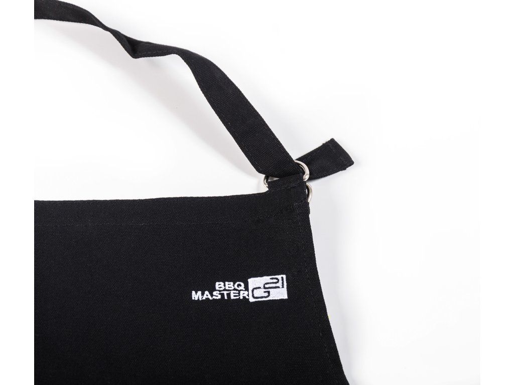 Grilovací zástěra s dvěma kapsami z pevné 100% bavlny v praktické černé barvě chrání vaše oblečení před ušpiněním při grilování.