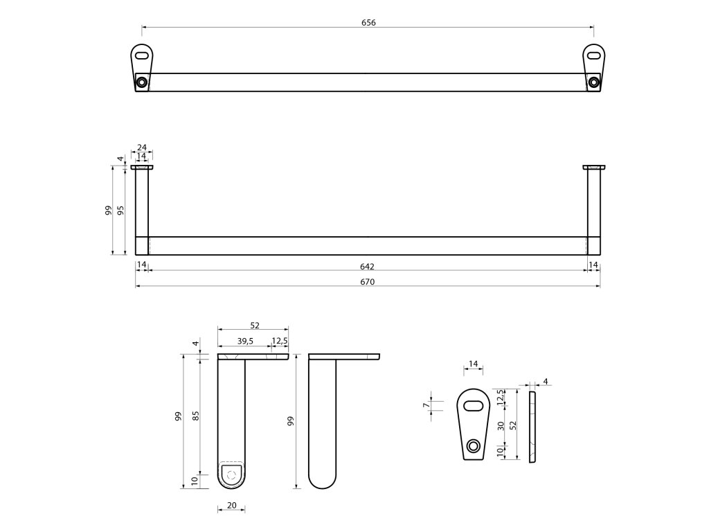 GSI CLASSIC čelní držák ručníků 75cm, chrom PACL75