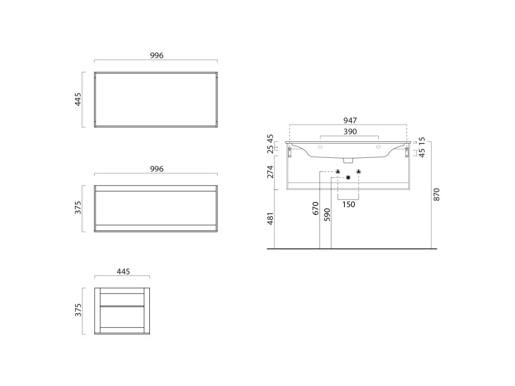 GSI PURA konstrukce pod umyvadlo 102x46cm, černá mat MSP10228