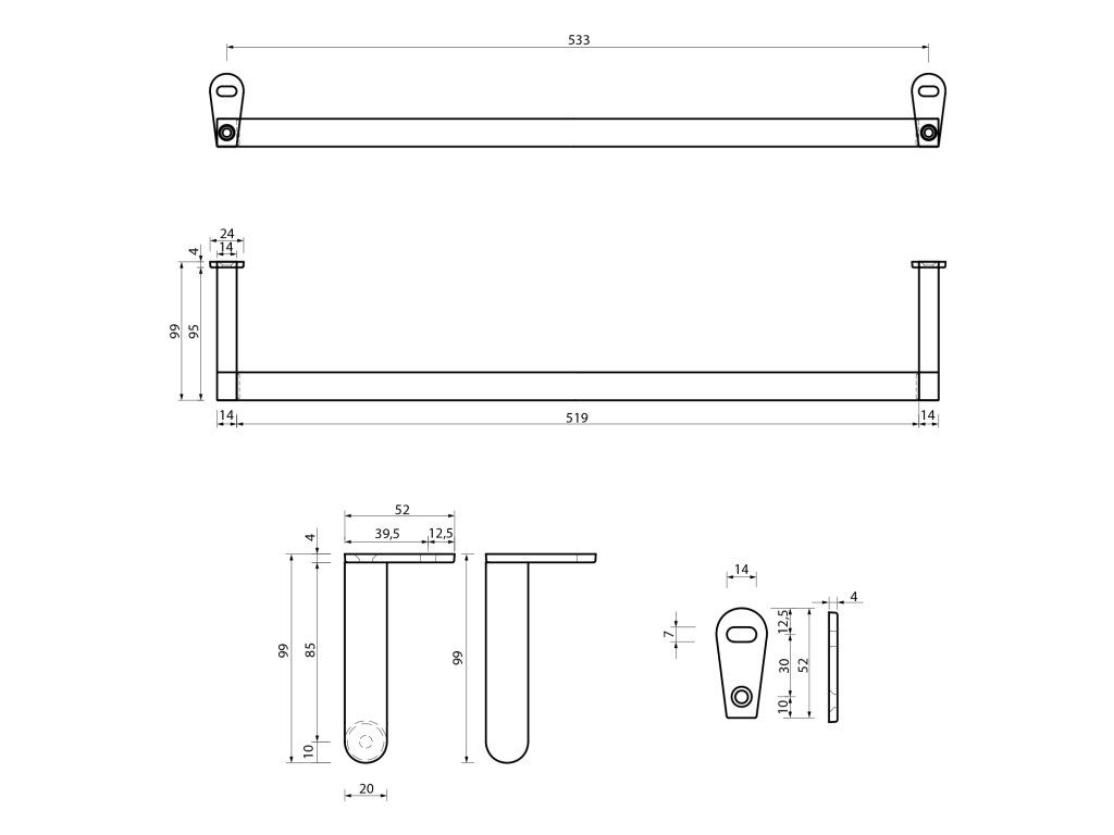 GSI SAND/KUBE X/NORM čelní držák ručníků 60cm, chrom PASAND60