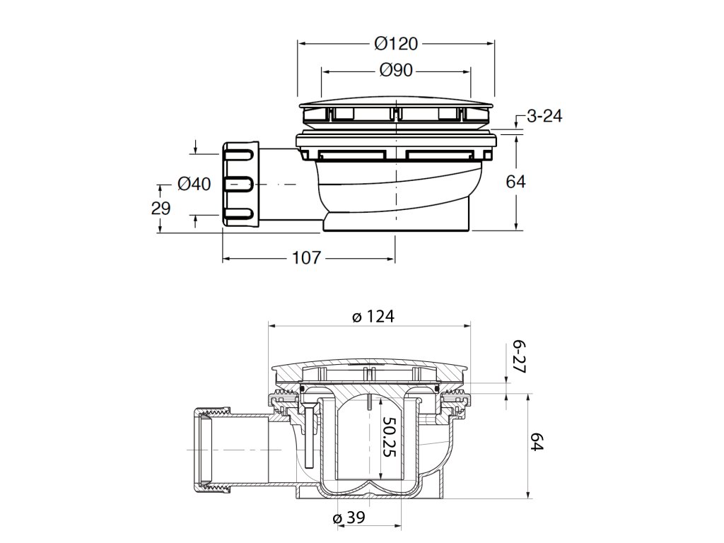 GSI Vaničkový sifon, průměr 90mm, DN40, nízký, krytka chrom PILDSR