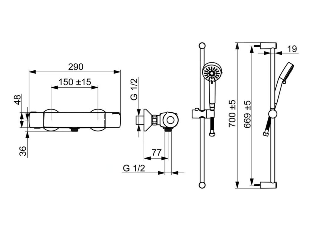 HANSA Basic sprchový set s termostatem, 3 proudy, chrom, 55150131