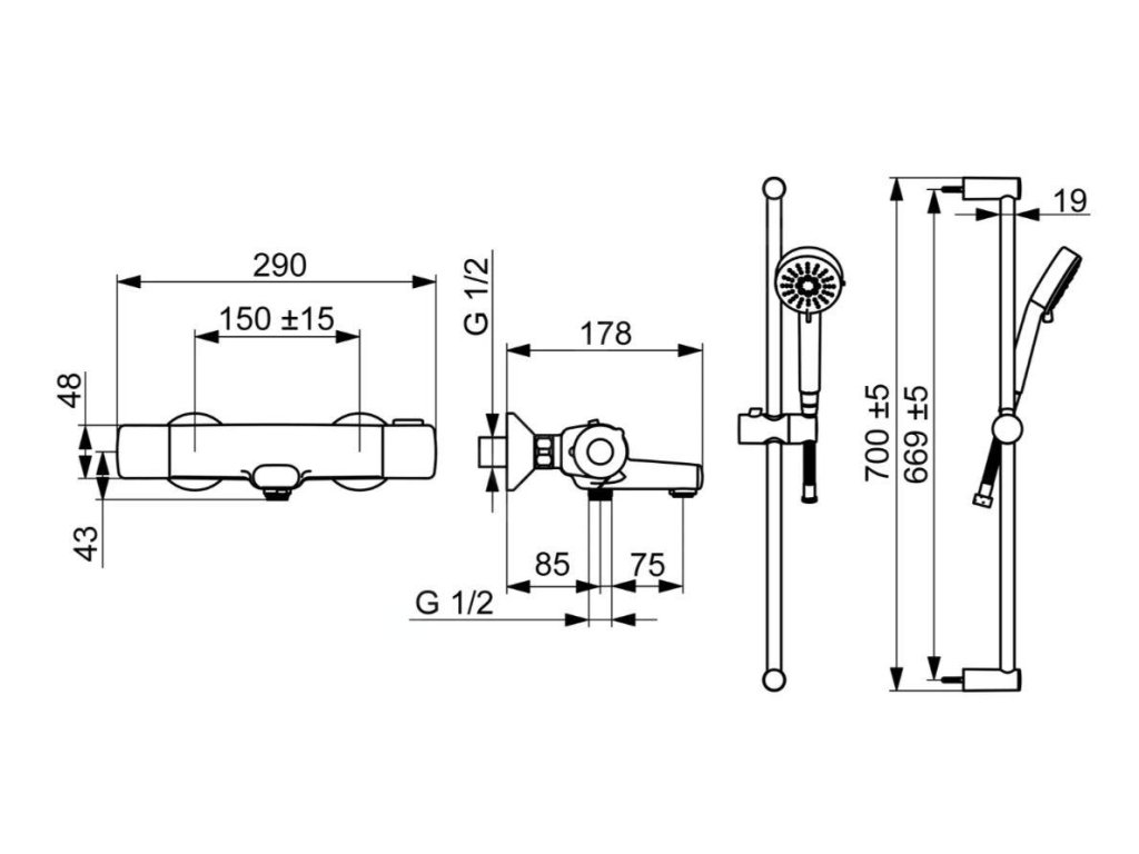 HANSA Basic Sprchový set s vanovým termostatem, 3 proudy, chrom, 55162131