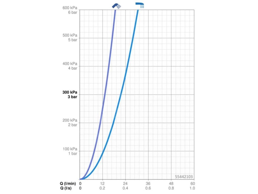 • průtok: 21,6 a 13,2 l/min (při tlaku 3 bar)