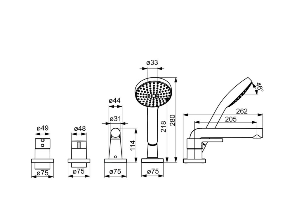 - pevné výtokové rameno, délka 205 mm