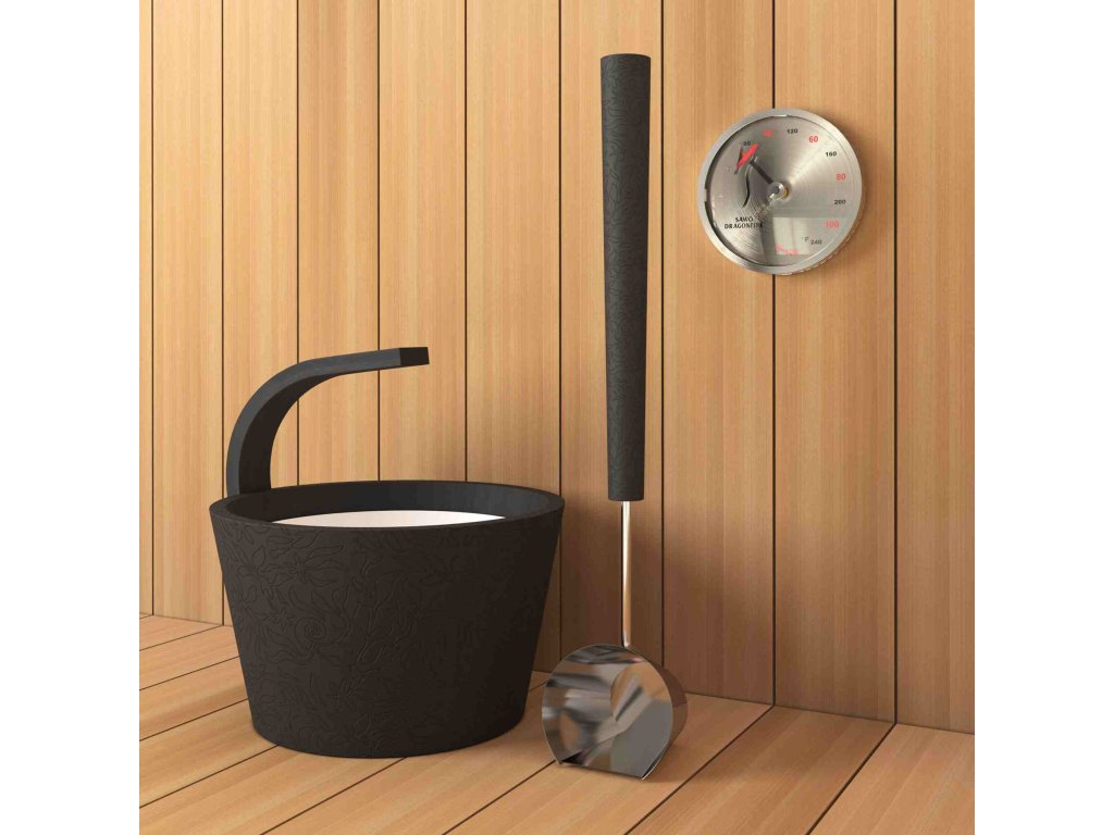 Tento elegantní saunový kbelík v barvě černého dřeva s vyrytým vzorem je ideální pro použití v finských saunách. Díky své designové kvalitě a praktické plastové vložce je nejen krásným doplňkem vaší sauny, ale také funkčním nástrojem pro saunování.