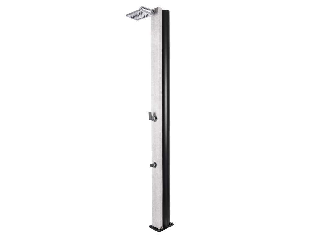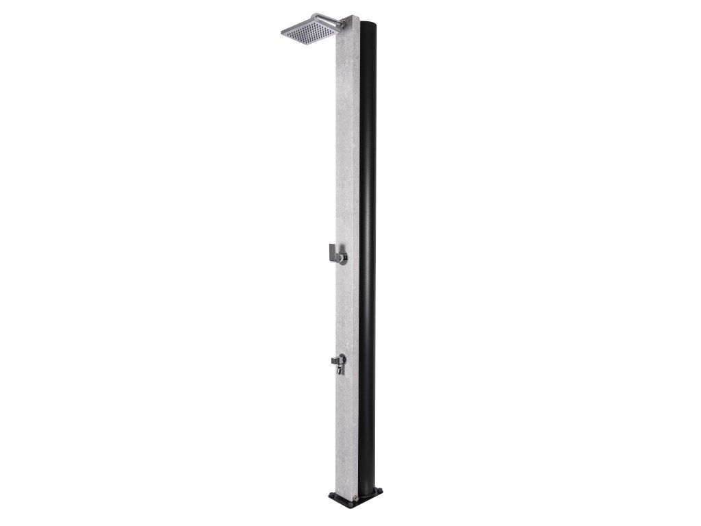 Solární sprcha o objemu 30 litrů. Tato sprcha má hliníkovou přední část s žulovou povrchovou úpravou a šířkou 112 mm. Součástí je páková baterie s obdélnikovým designem z chromované mosazi. Sprchová hlavice, která je na konci mosazného ramene (178 mm) má rozměr 220 x 150 mm. Přívod vody s vnitřním závitem 1/2". Tento modej je navíc vybaven baterií s kouhoutkem pro oplach nohou.
