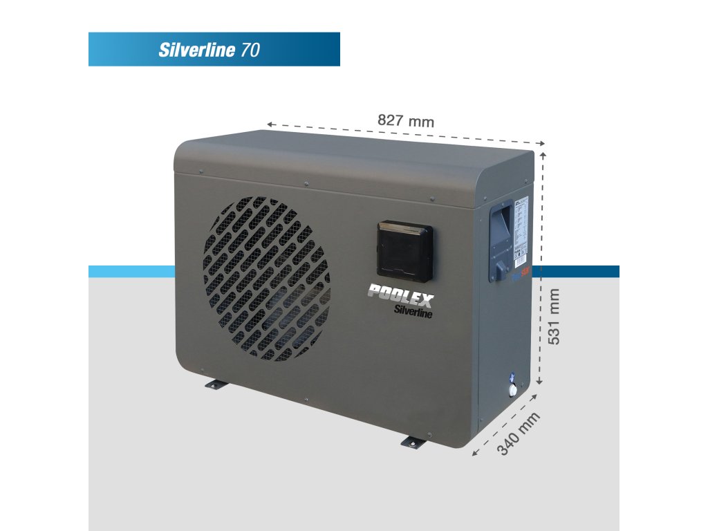 Tepelné čerpadlo Poolex Silverline od francouzské firmy POOLEX je nejlepším kompromisem v poměru cena/výkon. Vysoce výkonný kompresor Toshiba a dvojitý spirálový titanový výměník dávají COP vyšší než 6, na základě podmínek 26/26 *. Poolex Silverline je snadno ovladatelný a je vybaven ovládacím panelem LCD s technologií Touch & Go. Díky nové technologii výměníku tepla Twisted Tech© s topným vinutím titanu se teplota bazénu zvyšuje ještě rychleji. K dispozici je ve 3 výkonech od 5,5 do 9 kW.