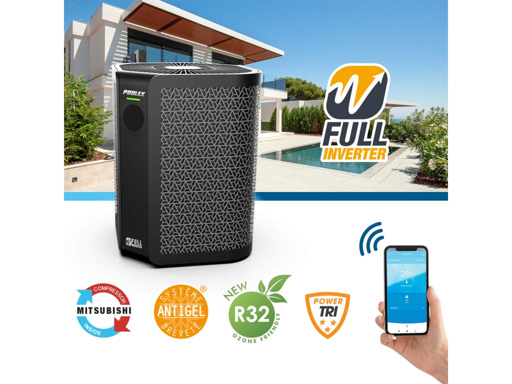Toto čerpadlo je vybaveno patentovanou vertikální ventilací společnosti Poolex a šetří podlahovou plochu, takže je ideální pro instalace v malých prostorech. Navrženo pro bazény od 30 do 115 m³ , zaručuje optimální využití a zároveň maximalizuje úspory energie díky energetické třídě A a technologii Full Inverter . Tato inteligentní technologie umožňuje automatické nastavení výkonu, aby se omezila spotřeba elektrické energie a zabránilo se předčasným startům a zastavením, což zajišťuje stabilní a trvalý tepelný komfort.