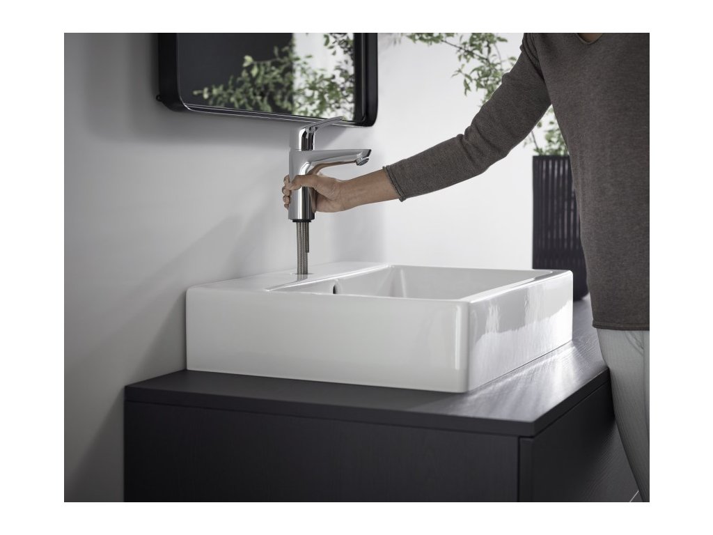 Funkce EcoSmart pak přispívá k celkovému snížení spotřeby vody, a to až o 50 %, avšak zachovává komfortní proud. Další výhodou je citlivé ovládání teploty a proudu vody prostřednictvím kovové páky. Za hladkým ovládáním stojí keramická kartuše. Baterie je bez odtokové soupravy. V neposlední řadě oceníte ComfortZone, která zajišťuje dostatečný užitný prostor mezi umyvadlem a baterií. Pohodlně si tedy umyjete ruce, ale také opláchnete vlasy.