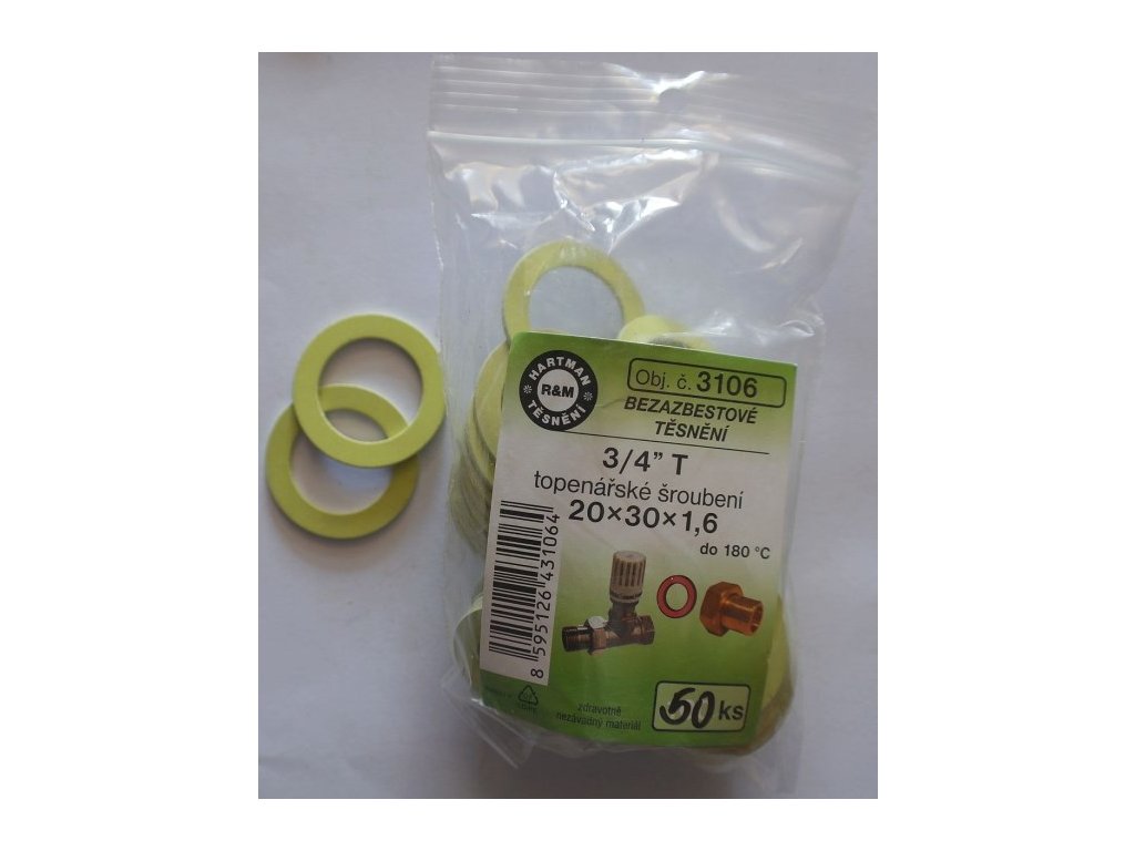 HARTMAN těsnění 3/4"T, 30x1,6mm topenářské, radiátorové, bezazbestové, 50 ks, SADA 3106