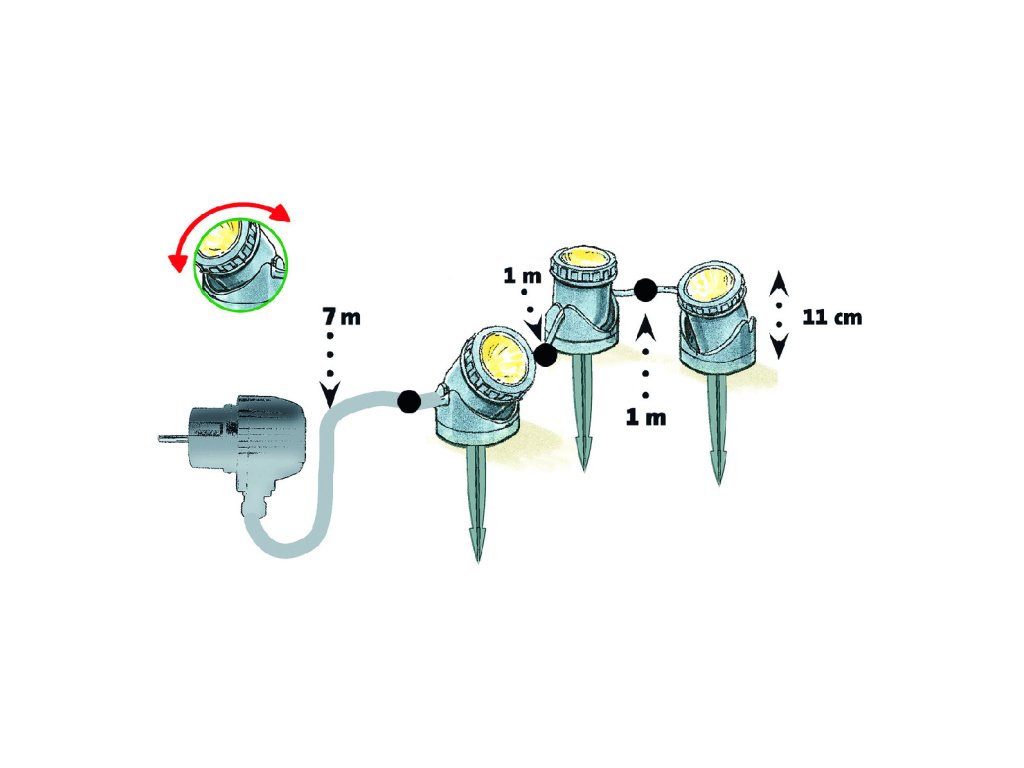 S HEISSNER LED vodotěsným jezírkovým osvětlením získáte vaši osobní oázu na zahradě ve vysoké kvalitě a dobrém poměru ceny a výkonu. Dobře umístěné jezírkové osvětlení pomáhá s orientací v zahradě za soumraku, večer a v noci a samozřejmě slouží ke zkrášlení jezírka. Užijte si atmosféru náladových světel. LED světlo HEISSNER U403-T Snadné umístění v jezírku, kde stačí uložit a obsypat dekoračními kamínky, při umístění v zahradě jsou vybaveny praktickým zápichem. Jakmile je umístěte můžete si nastavit sklon svícení. Světla nevyvíjejí teplo a jsou dodávaný včetně bezpečnostního transformátoru. Mají velice dlouhou životnost při použití pod vodou. Možnost rozšířit o další světla, díky vodotěsnému šroubovacímu spoji. Jsou dodávány se třemi zápichy pro snadné umístění v zahradě. Je použita 12 v technika pro bezpečnost. Jednoduchost systému umožňuje každému si světla nainstalovat sám. Tip Umístěte je jako nepřímé osvětlení pod rostliny. Ve tmě získáte krásný světelný efekty. ParametryProvozní napětí 230 V / 12 Vd x š 7 x 11 cmVýkon 3 x 3 W LEDSvětlo 2700 K teplá bíláDélka kabelu 7 m k prvnímu světluy, mezi světli 1 mDoplňkové parametry