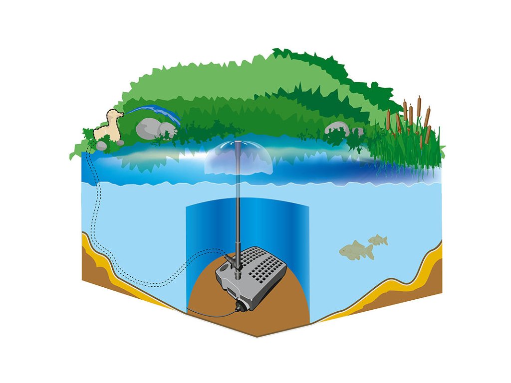 Jezírkový filtrační systém Heissner pro čistou a jasnou vodu ve vašem jezírku. Firma Heissner má více jak 100 let zkušeností s filtračními systémy od tlakových po průtokové a podvodní filtrace. Vhodně poskládané plně vybavené sady obsahují vše potřebné pro udržení čistého jezírka. Filtrační systém jednoduše zvolíte dle objemu Vašeho jezírka. Podvodní filtrace vše v jednom Je určeno pro jezírka do 5000 l. Podvodní filtrace s čerpadlem a integrovanou UV lampou 9 W pro ti řasám. Na těle filtrace je průzor pro kontrolu UV lampy. Celoplošný filtrační povrch s mechanickou filtrací zaručuje prodloužení intervalu mezi nutnou údržbou. Žádná část filtrace prakticky není vidět díky umístění na dně jezírka. Sada čerpadla s filtrem obsahuje i regulovatelnou přípojku na zapojení vodního chrliče a teleskopickou trubici s vyrovnáváním sklonu a regulací množství vody. Je osazena filtračními médii, filtračním molitanem pro hrubé nečistoty, bio domečky pro usídlování filtračních bakterií pro biologickou filtraci. Parametry: UV lampa: 11 Wcelkový příkon: 45 Wvýkon: 2 000 l/hdopravní výška: do cca 1,80 mvčetně 3 vodních efektů (zvon, kaskáda, široká kaskáda)d × š × v: 38 x 27 x 13 cmDoplňkové parametry