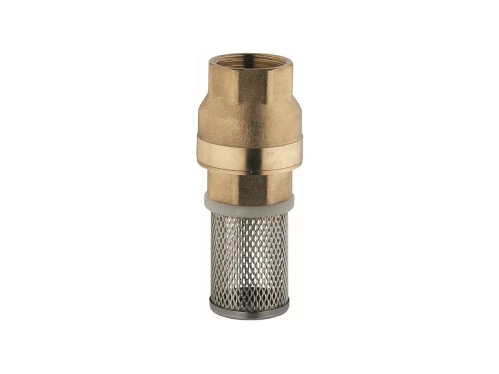 Patní ventil se sacím košem, zpětný ventil z pozinkované mosazi, síto z ušlechtilé oceli, sítko 0,5 mm.