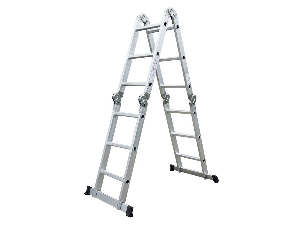 Hliníkové štafle můžete využít jednak jako dlouhý žebřík v délce až 3,7 m. Další variantou je možnost sestavit štafle jako přenosné lešení. Díky konstrukci s klouby lze štafle snadno umístit přes hřeben střechy.