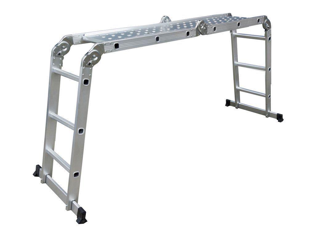 Hliníkové štafle můžete využít jednak jako dlouhý žebřík v délce až 3,7 m. Další variantou je možnost sestavit štafle jako přenosné lešení. Díky konstrukci s klouby lze štafle snadno umístit přes hřeben střechy.