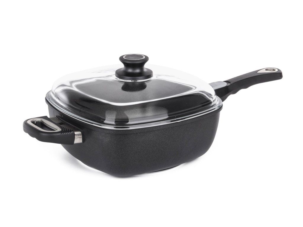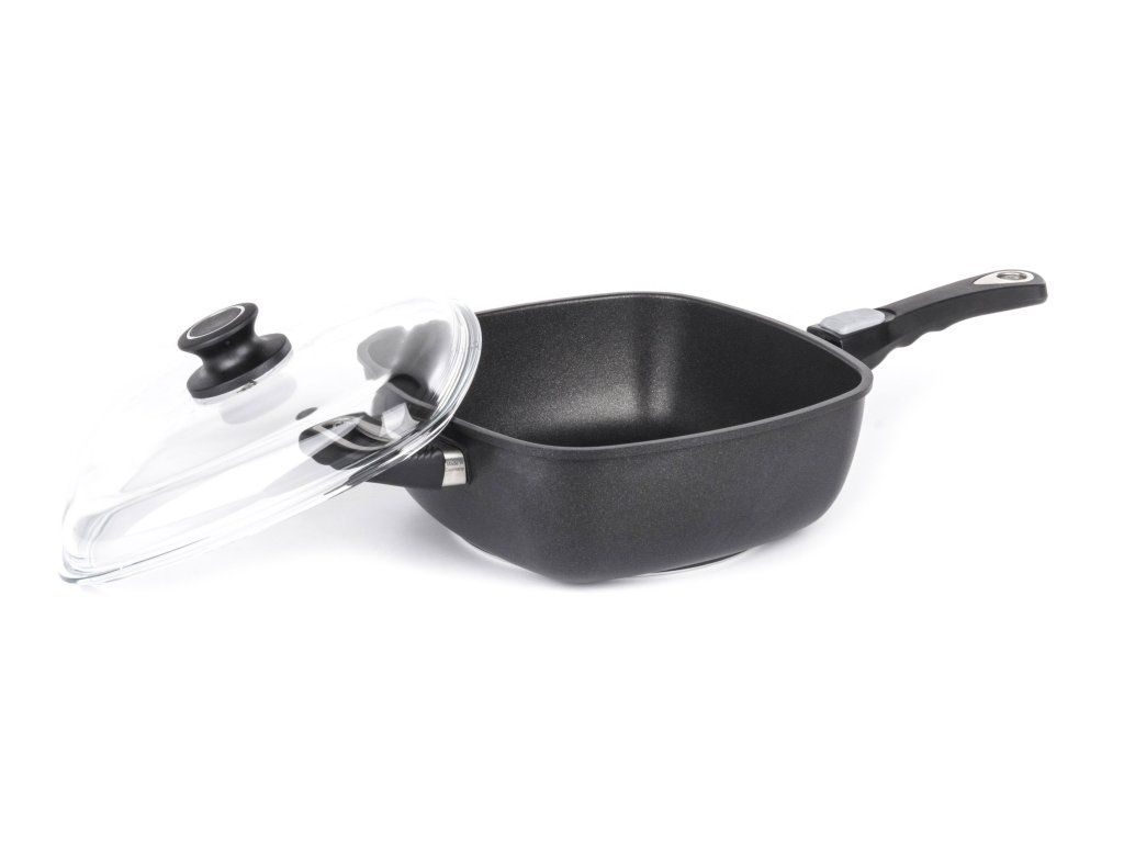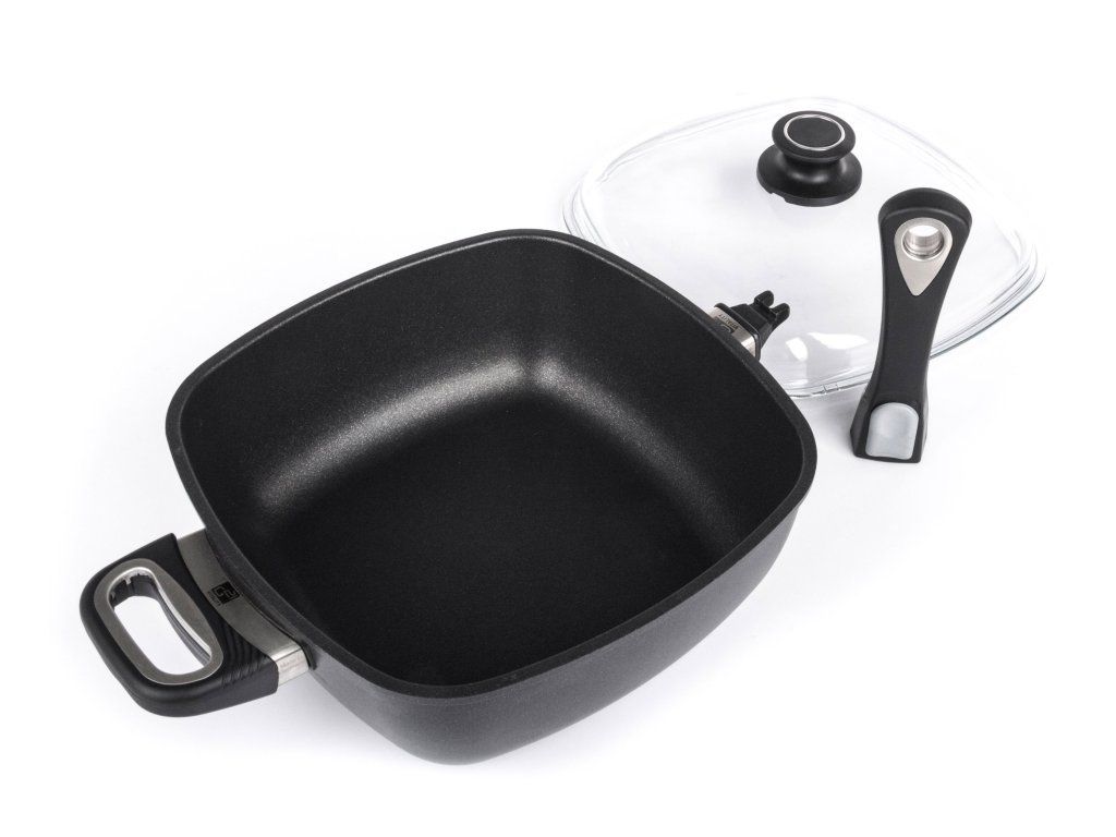 Prohlédněte si čtvercovou, 9 cm vysokou pánev, která splňuje všechny uvedené požadavky na dokonalou pánev. Je univerzální pro všechny typy ohřevů, teplo vede dokonale rovnoměrně, jídlo se na ní díky speciální nepřilnavé vrstvě LOTAN® nepřipaluje a smažit či zapékat můžete bez použití oleje.