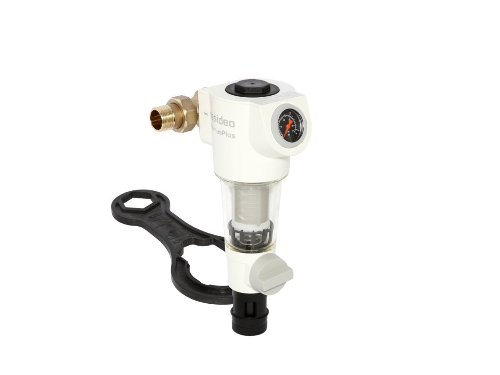 Jemný filtr F74CS s možností zpětného proplachování zajišťuje nepřetržitý přísun filtrované vody. Tento filtr zabraňuje vnikání cizích částic, jako je rez, zbytky konopí a zrnka písku, čímž snižuje pravděpodobnost koroze a zaručuje hygienicky čistou pitnou vodu.