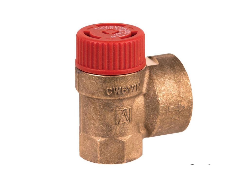 MateriályTěleso ventilu z mosazi, pružina z pružinové oceli, bezpečnostní krytka z vysoce kvalitního syntetického materiálu s označením, membrána z elastomeru odolná vůči horké vodě