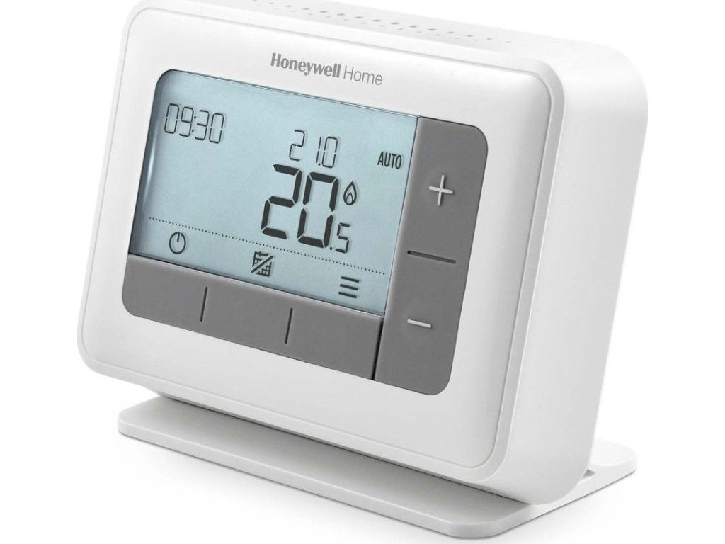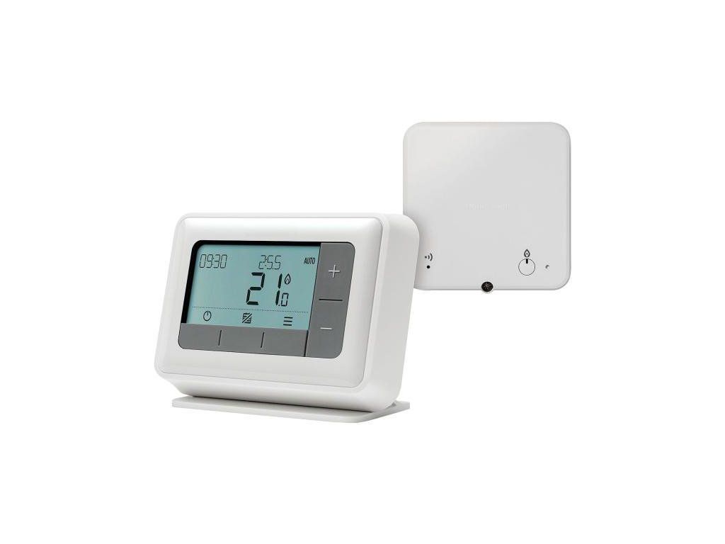 Termostat Honeywell T4R (bezdrátový) automaticky řídí vytápění a chlazení v bytech a domech podle nastaveného časového programu.