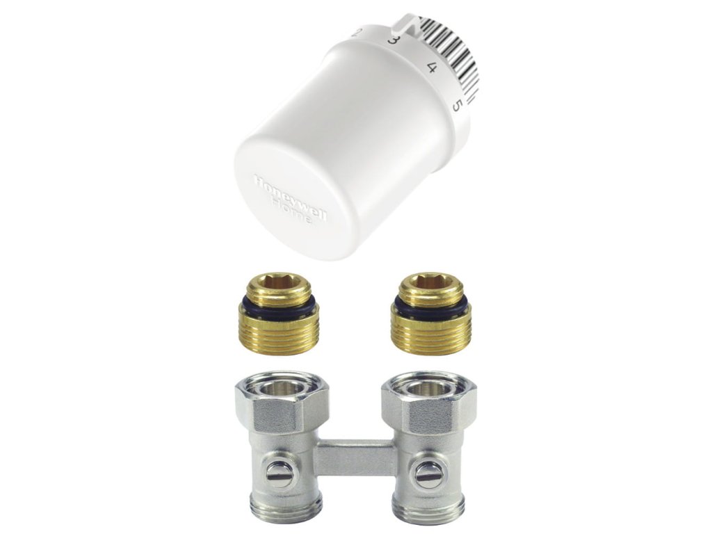 Honeywell Resideo termostatický set: termostatiská hlavice T3019 + připojovací šroubení Verafix-VKE (H-blok) přímé, 1/2", TL3095DY15A