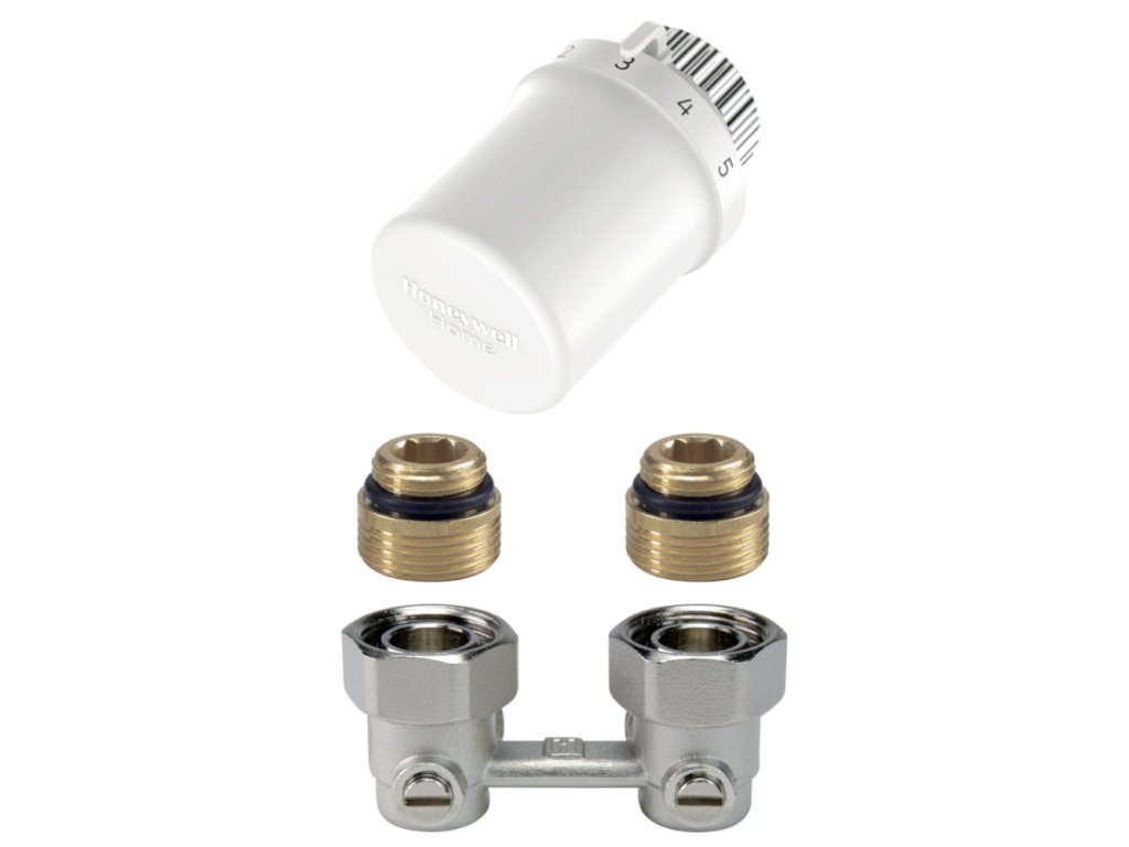Honeywell Resideo termostatický set: termostatiská hlavice T3019 + připojovací šroubení Verafix-VKE (H-blok) rohové, 1/2", TL3095EY15A