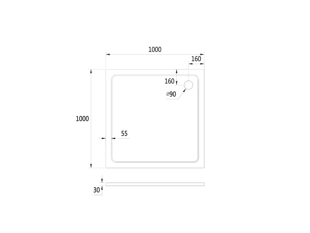 - Průměr otvoru pro sifon - 90 mm