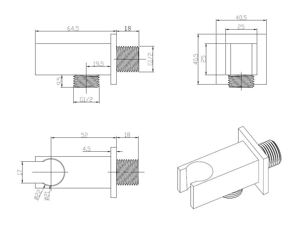 HOPA Hranatý vývod ze stěny s držákem sprchy BAPG3006