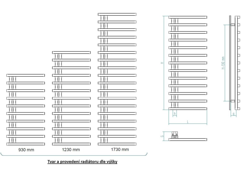 - 400 × 1230 mm, výkon 433 W, topná tyč 400 W
