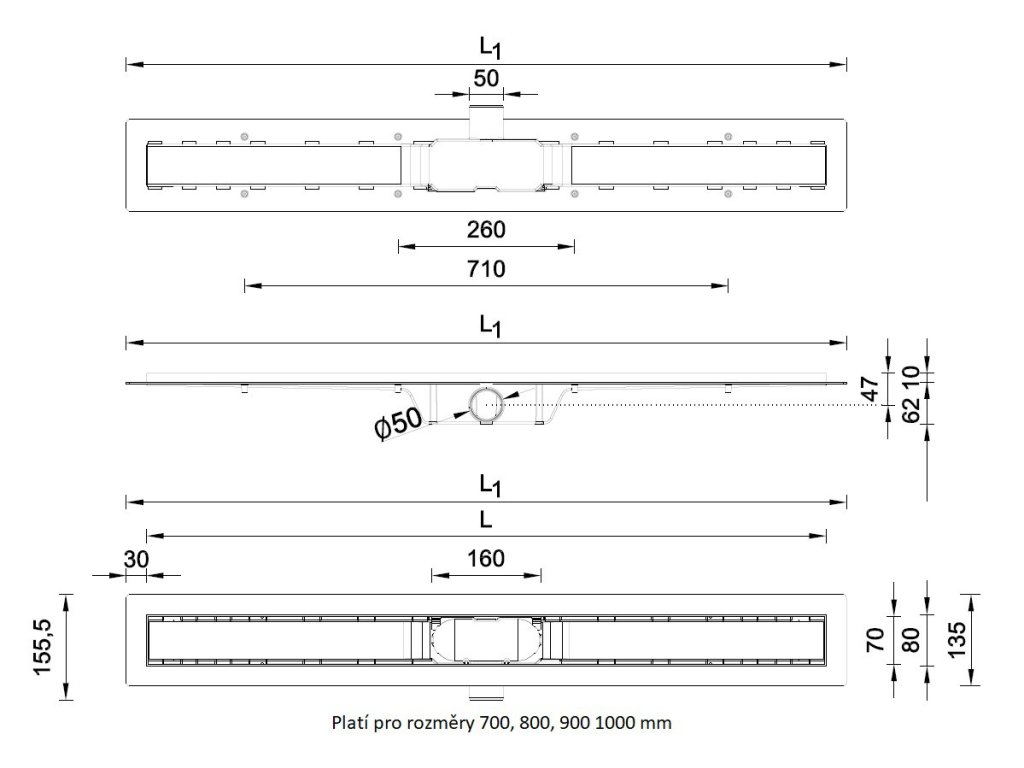 Odtokový žlab M - 700: délka roštu 70 cm, délka žlabu 76 cm