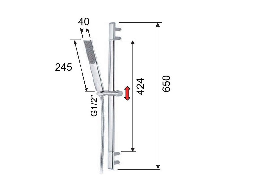 - Příslušenství: sprchová hlavice, hadice, posuvný držák sprchy, instalační materiál