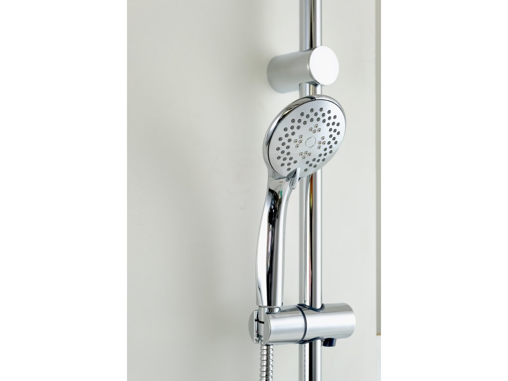 Součástí balení je sprchová tyč, sprchová hlavice, hadice, posuvný držák sprchy a instalační materiál.