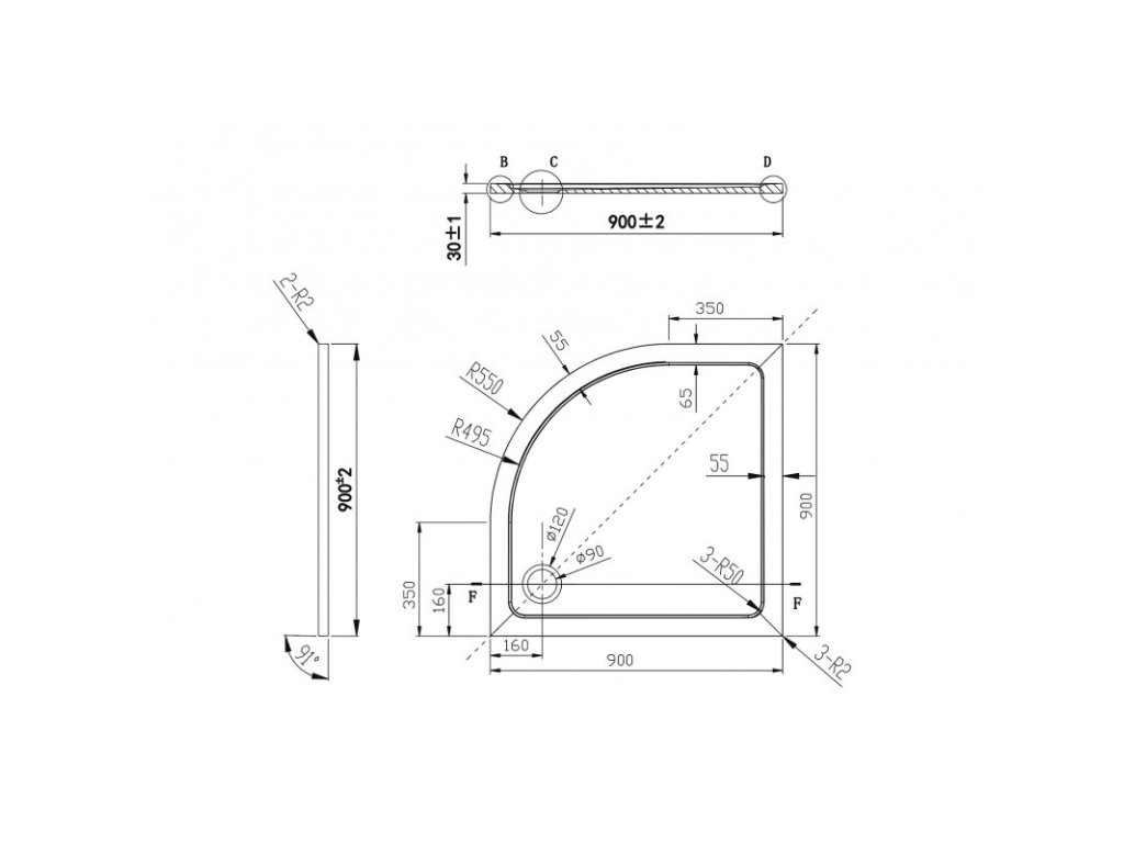 | Tvar: | Čtvrtkruhový |
