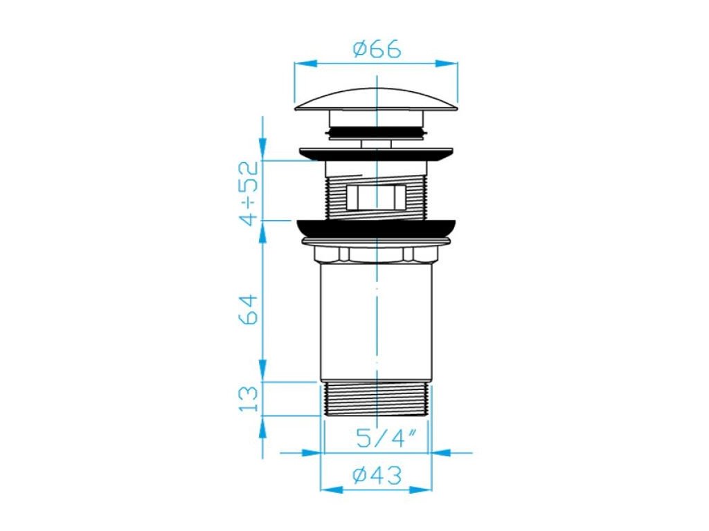 Pochromovaná umyvadlová výpusť s click-clack systémem. Výpusť je s velkou zátkou a je vyrobena z kvalitní pochromované mosazi.