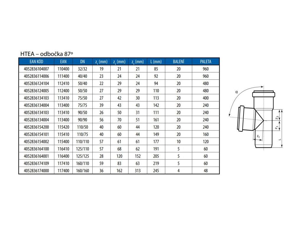 HT PLUS HTEA odbočka odpadní DN110/110, 87°, PP, šedá, 115400