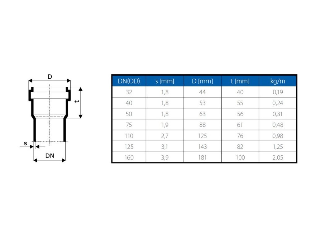 HT PLUS HTEM trubka odpadní DN75, 150mm, s hrdlem, PP, šedá, 113000