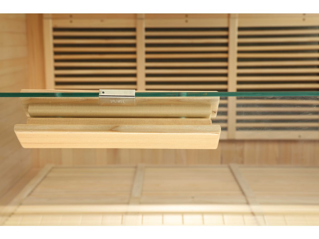 Infrasauna CONSTANCE 2+ je vhodná pro dva dospělé. Vyznačuje se kvalitním řemeslným zpracováním, elegantním designem a bezpečnostní. Vyznačuje se kvalitou. Je vyrobena z vyzrálého dřeva kanadské jedle s životností přes 300 let. Vyniká minimálním množstvím suků a minimální kazivostí bez výskytu smůly. To v konečném důsledku znamená, že při pobytu v sauně ucítíte pouze příjemnou vůni dřeva bez vedlejšího zápachu.