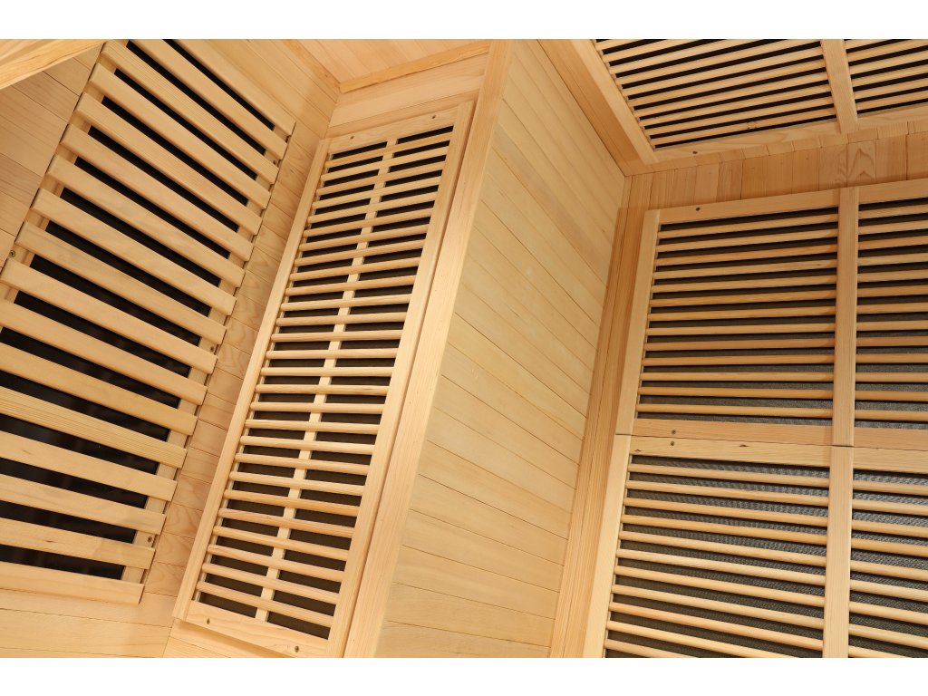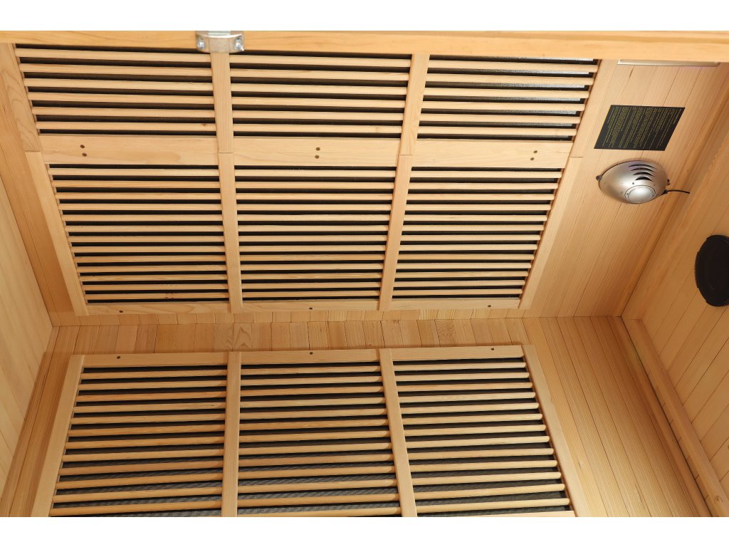 - Pro regulaci správné teploty uvnitř sauny-infrasauny můžete použít přenosný stropní ventilátor. Toto umožní rychlejší a rovnoměrnější rozložení tepla.