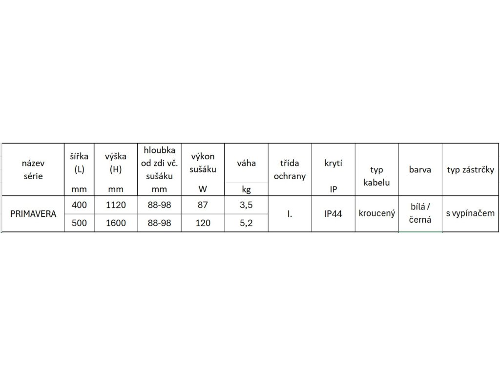 Instalprojekt Elektrický sušák PRIMAVERA Barva radiátoru - C34 bílá matná, Rozměr radiátoru - 40 x 160 cm, Výkon - 103 W RADPRI401634