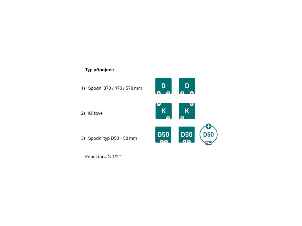- připojení radiátoru klasické (na rozteč) nebo spodní 50 mm