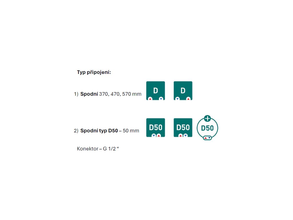 - radiátor má přípravu na středové D50 i spodní připojení
