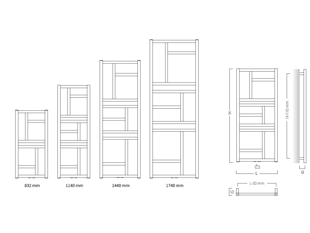 Dostupné rozměry radiátoru MONDRIAN v černé matné barvě:
